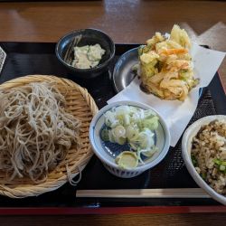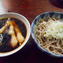 ちたけとは地元で食べられているキノコだそうな。黒くて干したような固さがあり、香りも干し椎茸を控えめにしたような雰囲気でワルくない。そのちたけが入った温かい汁はキノコ汁のようで、木曽のとうじ蕎麦を連想させる純朴な味。 麺も香りが良くておいしかった。 おいしい蕎麦だった。